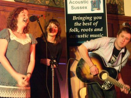 The third act to step up to the microphone were the recent winners of BBC's 2009 Young Folk Award, Megan and Joe Henwood; and it's not hard to see why they won. Megan, just twenty years of age on acoustic guitar, accompanied by her brother Joe, just-turned sixteen on alto and tenor saxophones. If you weren't there you may well think that this is an odd combination of instruments and I suppose in the conventional sense, it is. But occasionally, musicians appear in the public gaze and give us something original, fresh sounding and jaw dropping. The music was not so much conventional folk music (oh, how I hate those accursed genre pigeon holes, but I find myself having to use them) but a blend of folk and jazz, a slight hint of KT Tunstall was evident and some indefinable quality which just grabs the audience by the scruff of the neck and forces them to sit up and listen. This was one such occasion. The most remarkable thing a far as I am concerned it the tender age of these young performers. Megan has a intelligent delivery of inter-song banter, albeit with a young sounding voice, but when she started singing it is difficult to believe it was the same person giving the introduction. The resultant sound is tonally near perfect and extremely mature and coupled with intelligent lyrics makes the whole experience a pleasure to listen to every note proffered. As a guitarist, Megan is no slouch either and her playing undoubtedly adds to the amazing sound. Joe Henwood, plays saxophone with an ability that belies his age. How does anyone play that well after only six years of learning his craft? His contribution was electric and hauntingly beautiful. Just listen to the five songs on Megan's MySpace site and you will understand what I am trying to get across. Finally, the star of the show - one of my all time favourites and enormously popular with Acoustic Sussex audiences - Anais Mitchell. Over the past three or four years, I have had so much to say about this remarkable young lady that I fear I may well run out of superlatives. To paraphrase one of Anais' lyrical lines "How can so much light shine through such a small window?" But sure enough, it does, with dazzling beauty. Considering that Anais' flight from New York was cancelled on Monday she put on an amazing performance; battling tiredness, about three hours after getting off her flight on Tuesday afternoon. Anais just gets better by the day and every time I see her, she presents us with ever-more polished performances. Tonight was no exception. Did I forget to mention that, by sheer co-incidence, Anais happens to be one of Megan's favourites too? The story goes that when she was offered the gig by Martin, she burst out crying with happiness. Well, during Anais' set she invited Megan to get up and sing with her on stage. Poor Megan was overcome with emotion and didn't quite give as much to the song as, indeed, she is capable of. Later, Joe accompanied Anais with his saxophone, giving the music an atmospheric edge and his sax appeared as if it was intended to be there all the time. Towards the end of the set he played some astounding solos on Cosmic American and it was nothing short of sublime. This young lad and his sister will surely go far if they keep this up. Joe said to me afterwards that he did not know the song and as a consequence did not know which notes were coming next, but magically his fingers just automatically went to all the right places. A truly astounding performance. Anais's set ended with everyone on stage performing a Bob Dylan number, which turned out to a bit of a "train-wreck" - but great fun. Undoubtedly, this showcase was a roaring success and I look forward to the "guitar showcase" next month with bated breath. Maximum Bob |