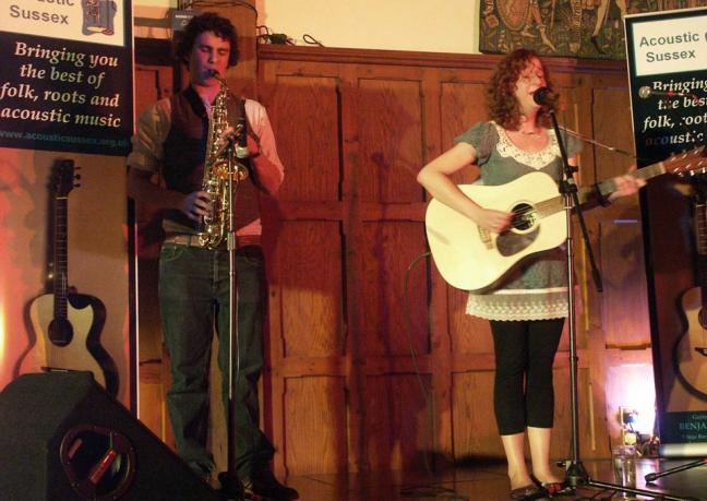 Sussex crew, this must have been an extremely heartening experience. The evening began with Sadie Jemmett on Appalachian dulcimer, acoustic guitar and vocals, who performed her set with a more than respectable set of introspective songs with interesting lyrics and a strong vocal. Sadie currently lives and operates in the London scene, although she admitted that it was nice to appear at a venue near her original home. She has a lot going for her and just needs to do the time and polish her act, to gain success in her chosen career. I am sure she will succeed once her name gets around the circuit.